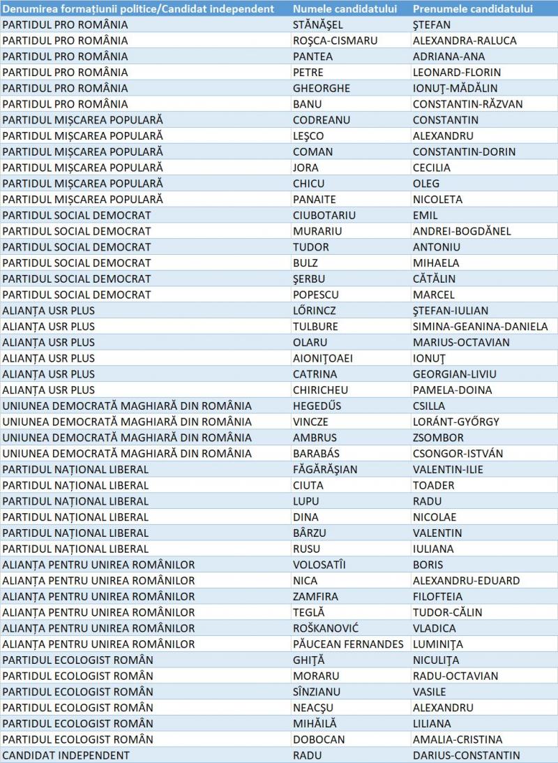 La Camera Senatului s-au înscris 29 de candidați, de la 9 formațiuni politice: