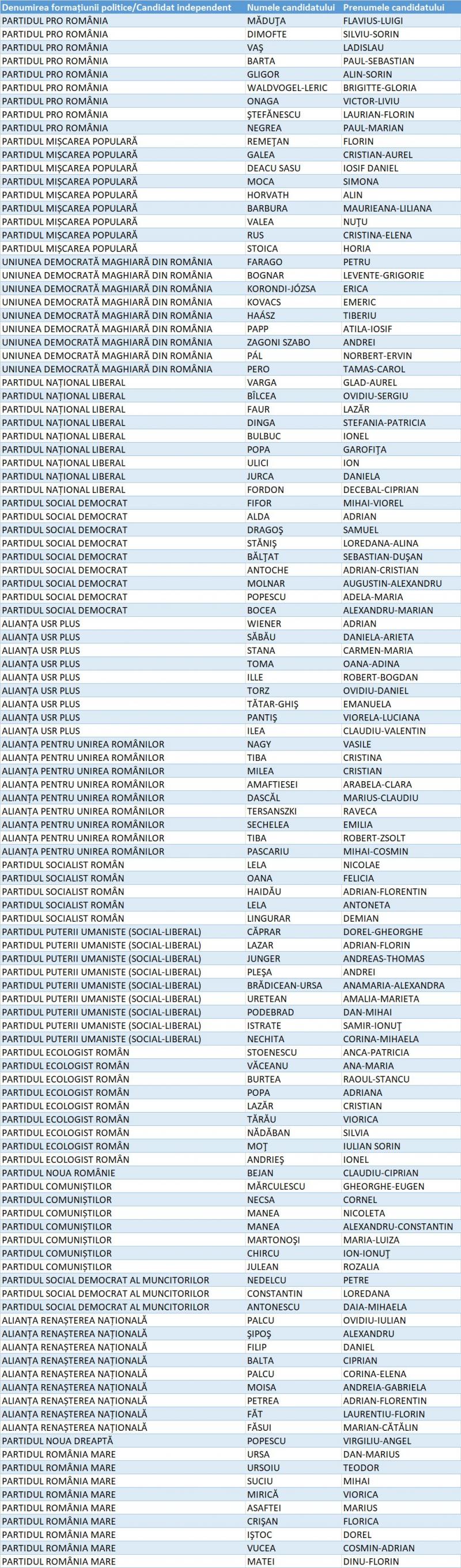 La Camera Senatului s-au înscris 65 de candidați, de la 16 formațiuni politice: