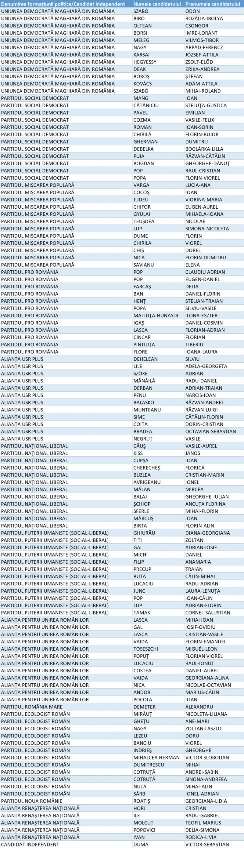 Lista candidaților la Parlamentul României din Județul Bihor: