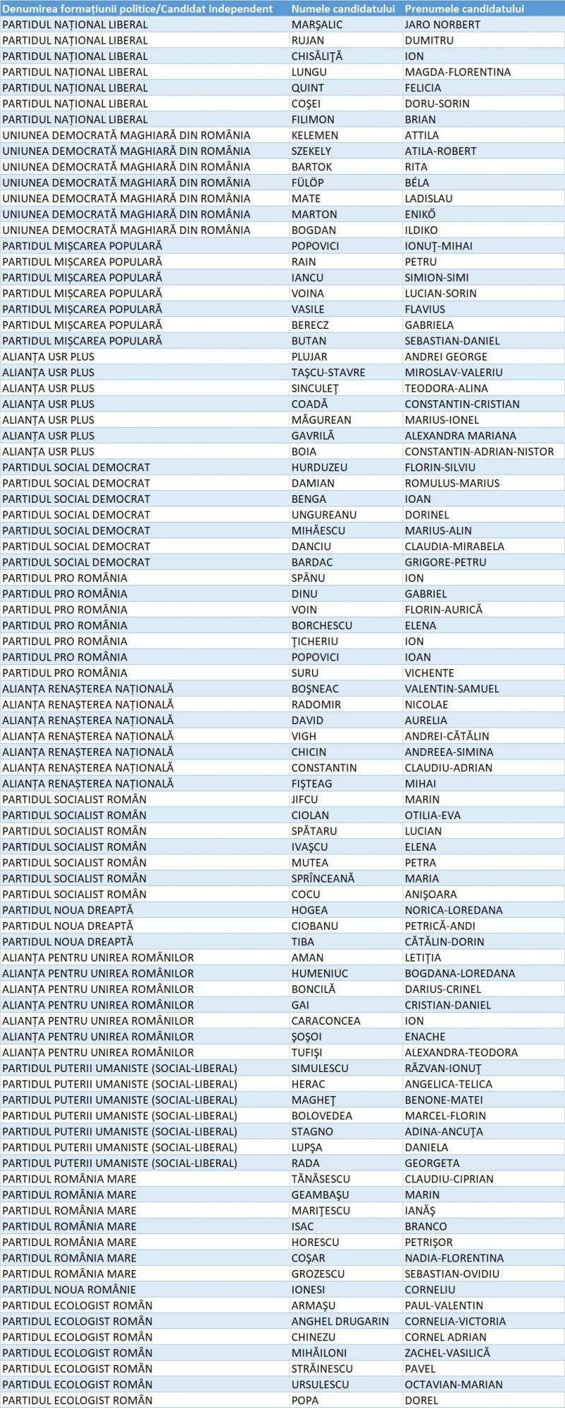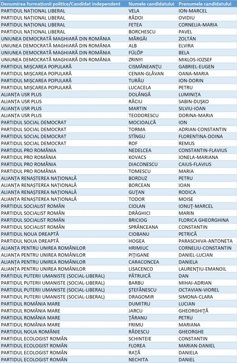 Lista candidaților la Parlamentul României din Județul Caraș-Severin:
