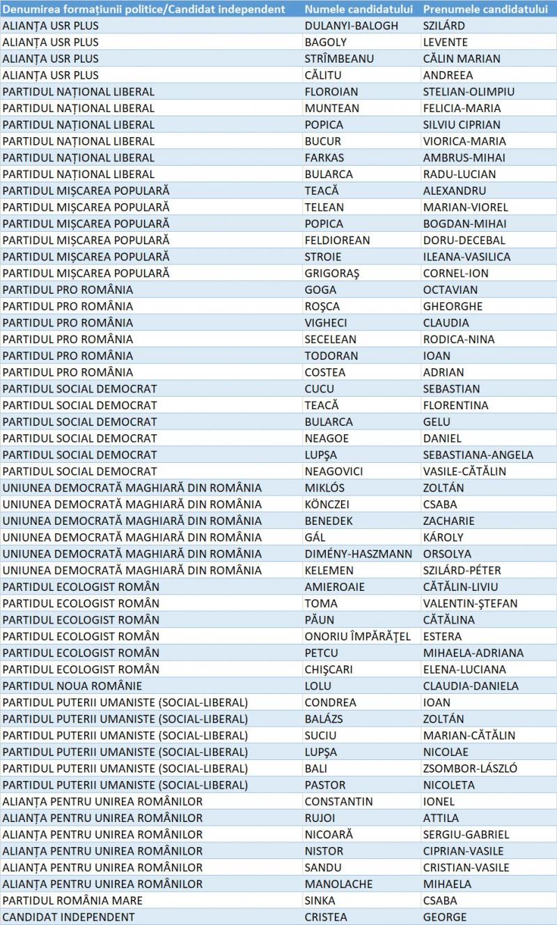Lista candidaților la Parlamentul României din Județul Covasna: