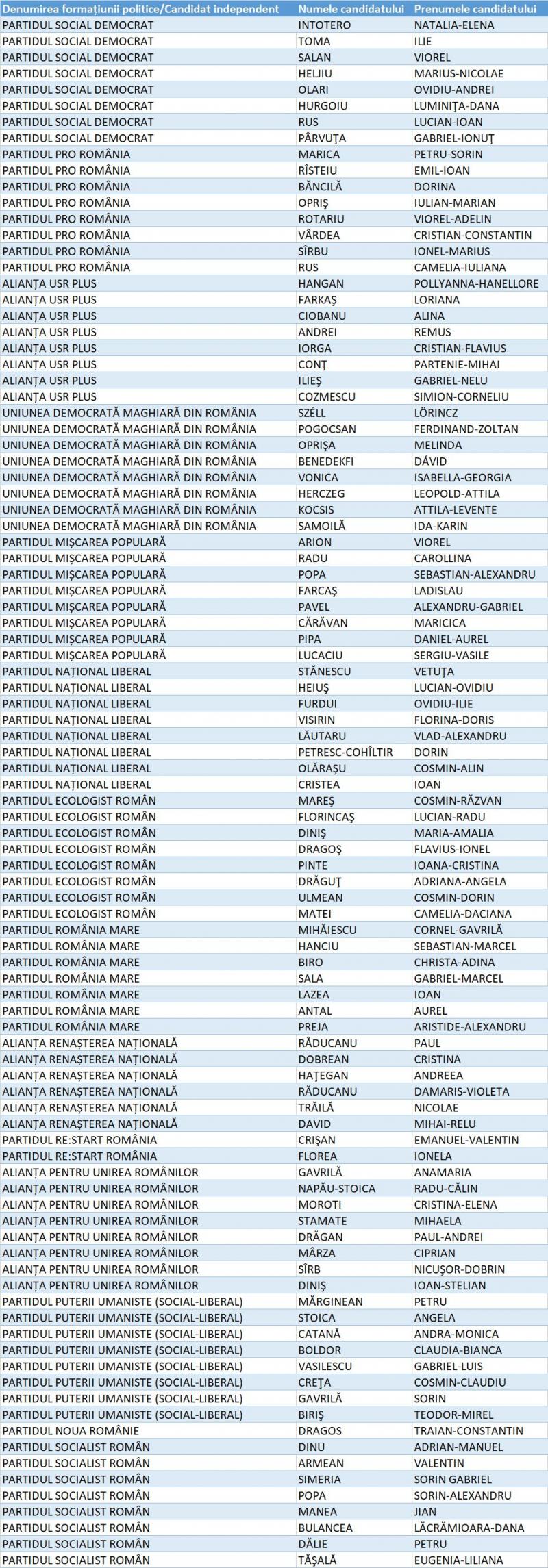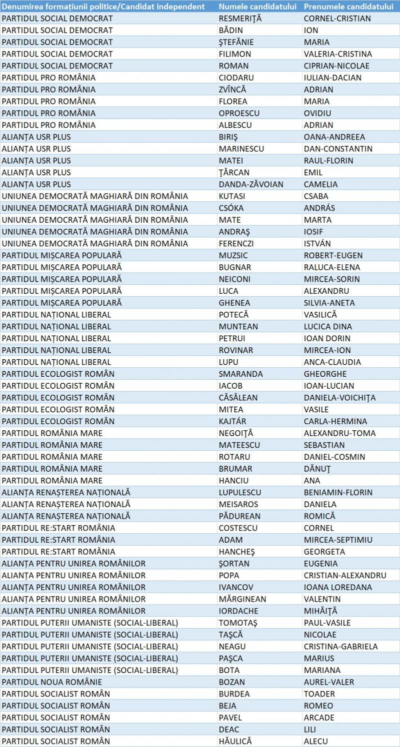 Lista candidaților la Parlamentul României din Județul Hunedoara:
