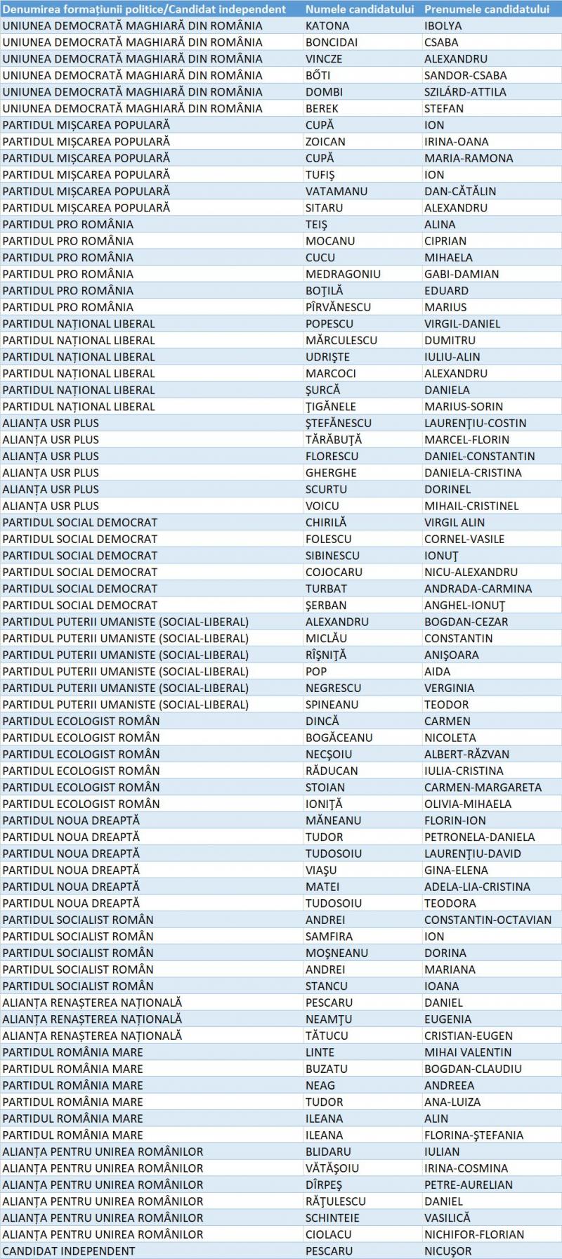 La Camera Deputaților s-au înscris 75 de candidați, de la 13 formațiuni politice: