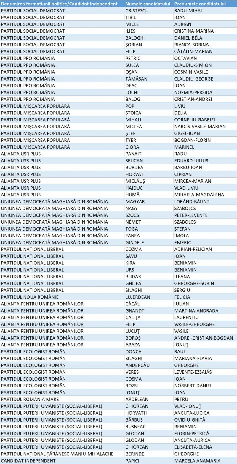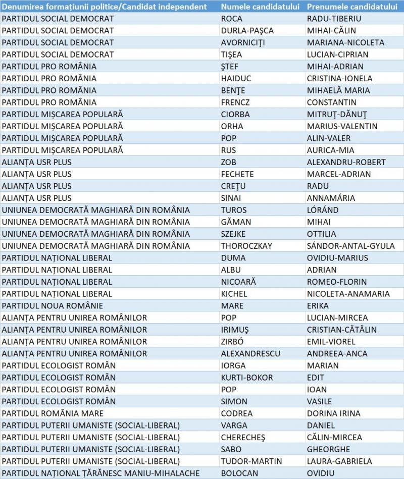 Lista candidaților la Parlamentul României din Județul Satu Mare:
