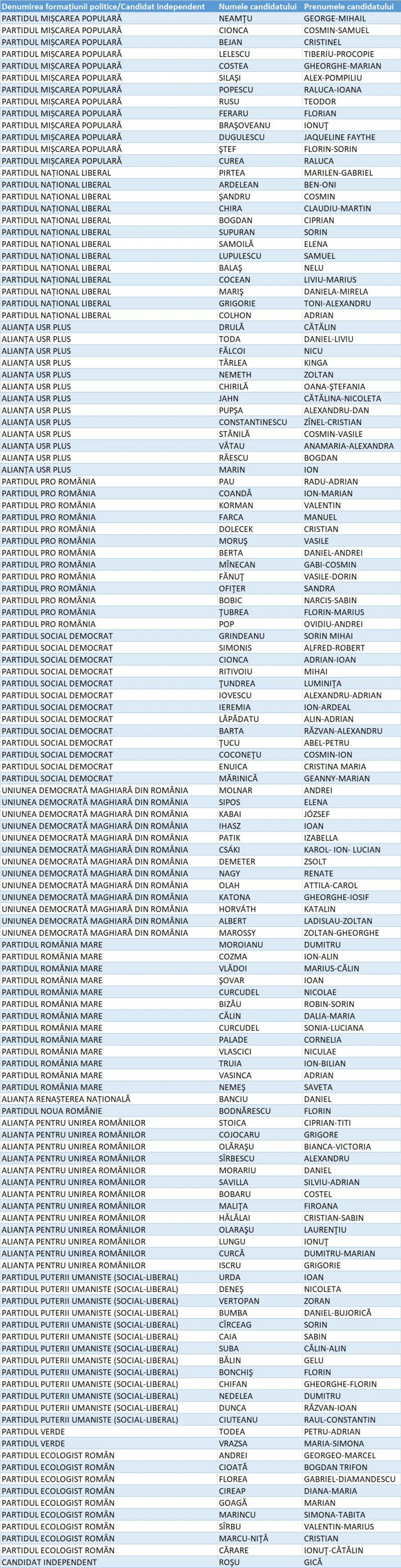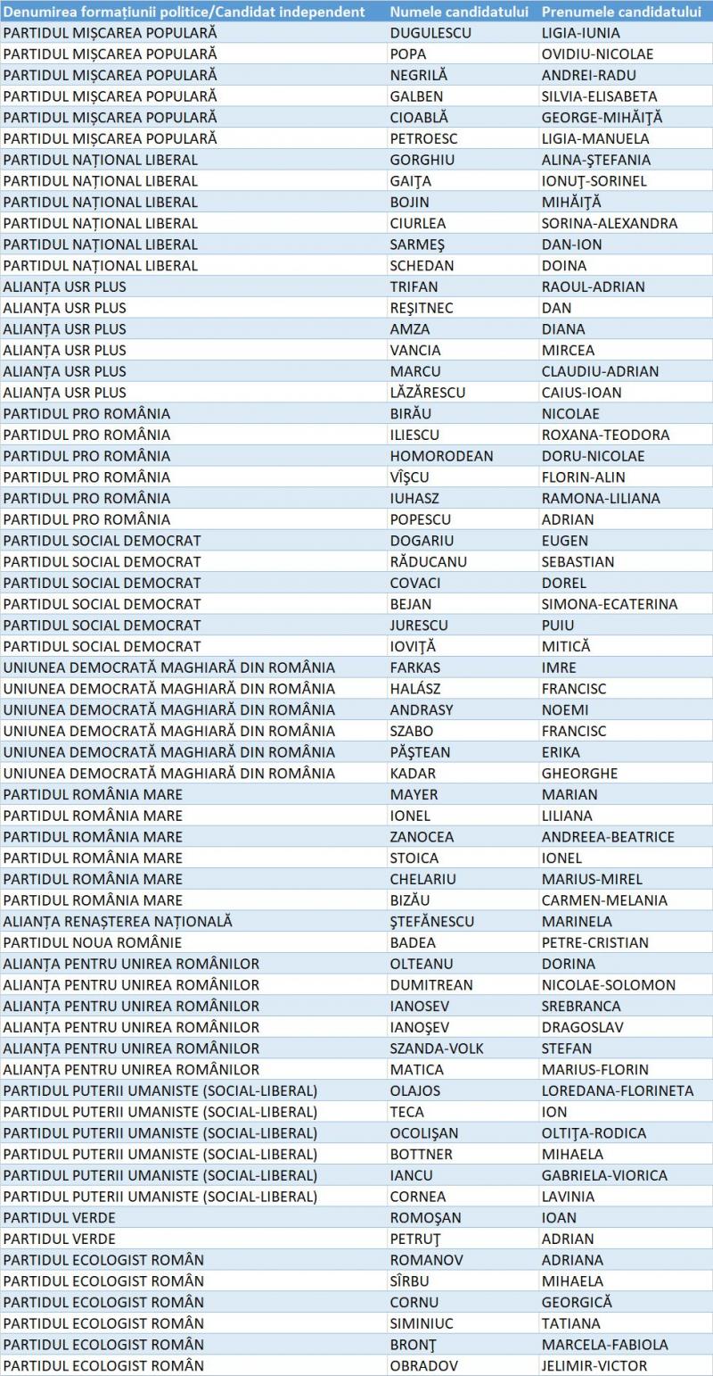Lista candidaților la Parlamentul României din Județul Timiș: