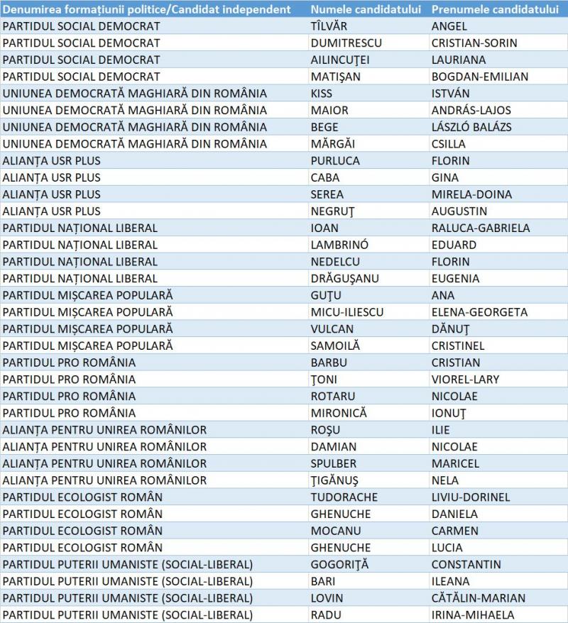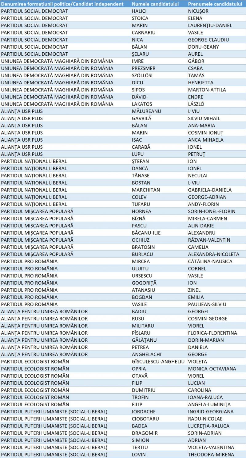 Lista candidaților la Parlamentul României din Județul Vrancea: