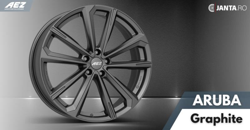 AEZ ARUBA Graphite vine cu certificare ECE și este destinată automobilelor de dimeniuni medii, complementând tehnic și estetic o gamă largă de modelele consacrate ale producătorilor AUDI și Volkswagen grație design-ului agresiv cu spițe în formă de V și a accentelor futuriste.