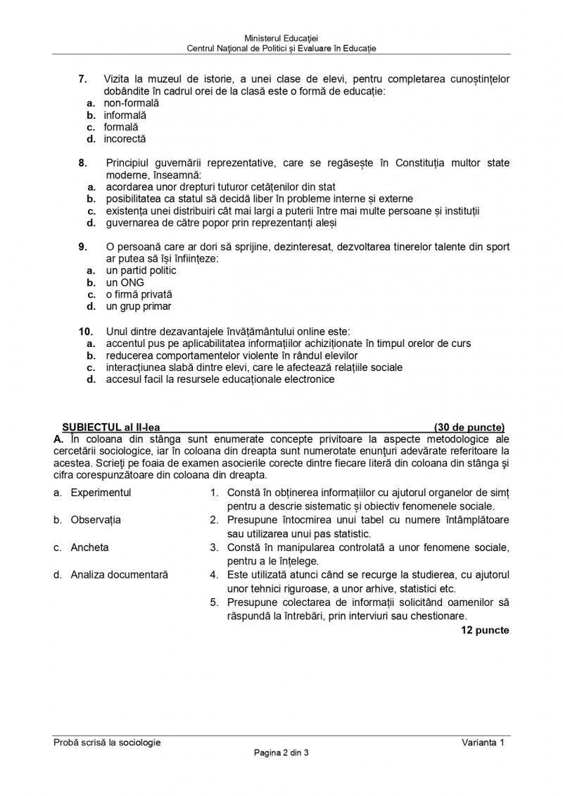 - Subiectele și baremul de corectare la Sociologie au fost publicate pe Observatornews.ro