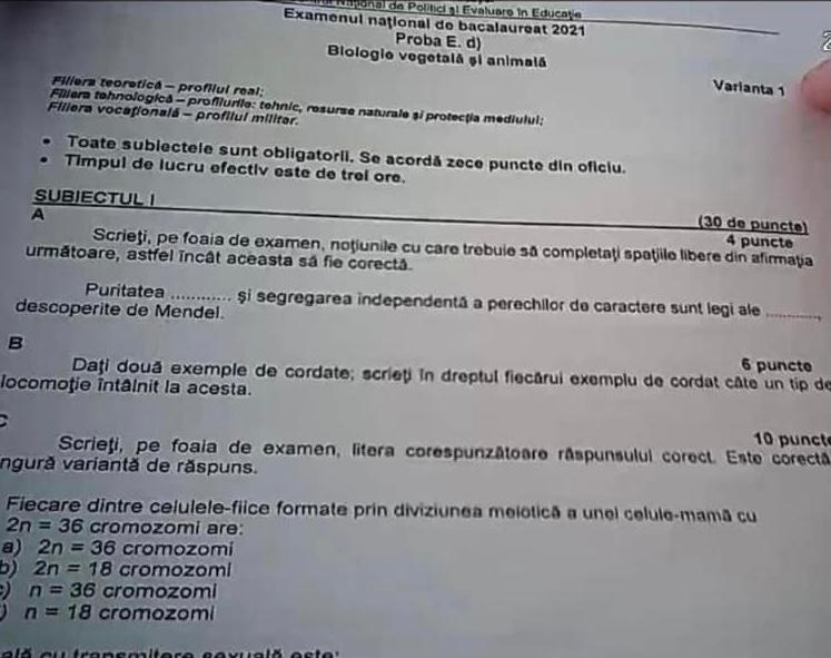 Update: Iată ce subiecte au căzut la proba de biologie vegetală.