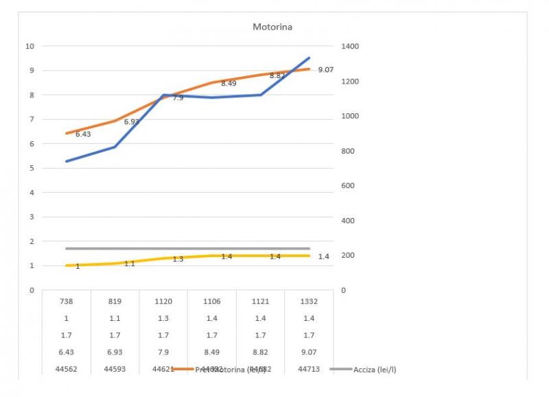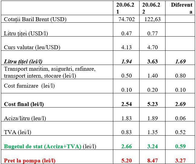 În aceste condiții consider ca era normal să se inițieze măsuri încă de la începutul anului 2022, astfel încât aceste câștiguri suplimentare față de anul trecut să fie împărțite consumatorului român. În situația în care acești bani suplimentari, încasați fără nici un efort, erau dați consumatorilor, prețul ar fi fost în prezent la un nivel de 7.3 - 7.4 lei/l, susține Chisăliţă.