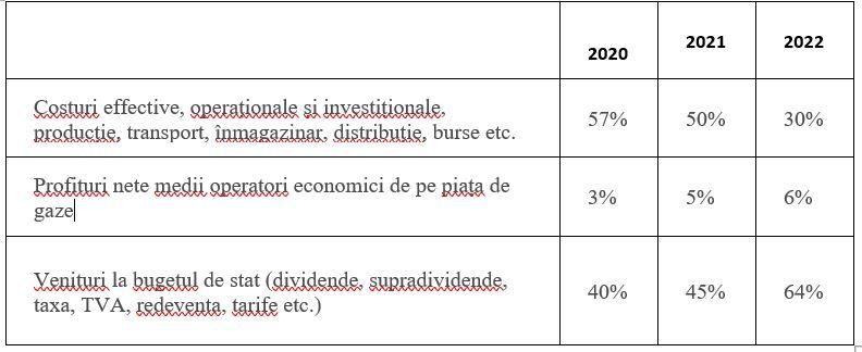 Președintele Asociației Energia Inteligentă prezintă şi un tabel care arată destinația banilor plătiți de consumatori pentru gazele consumate în ultimii 3 ani: