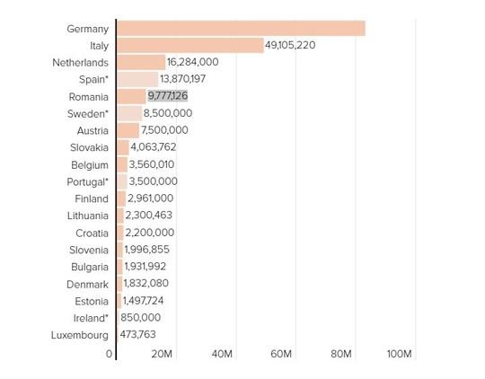 Pe de altă parte, numărul de vaccinuri irosite tinde să corespundă cu mărimea ţărilor, ca cifre absolute Germania având 83 de milioane de doze aruncate, iar Luxemburg puţin sub jumătate de milion. În clasamentul întocmit după acest criteriu, România este pe locul al cincilea, cu 9.777.126 de doze aruncate, dar Polonia şi Franţa, de exemplu, ţări mai mari decât România, au refuzat să comunice datele.