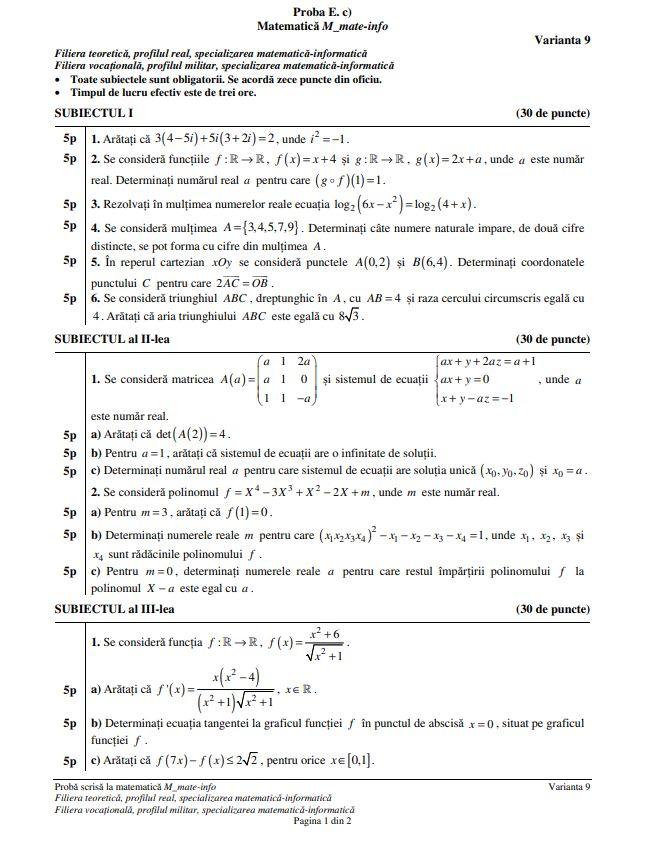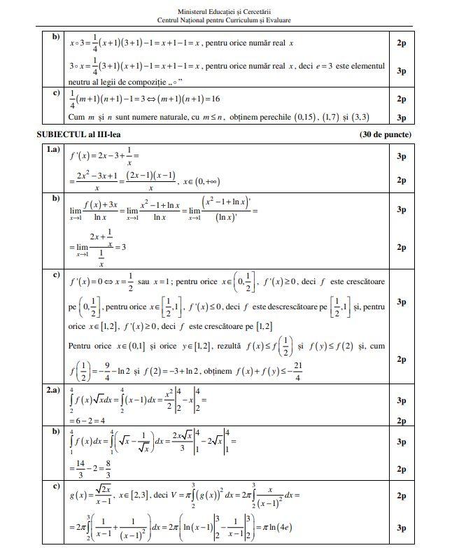 Bacalaureat 2025. Barem Matematică - Mate-info