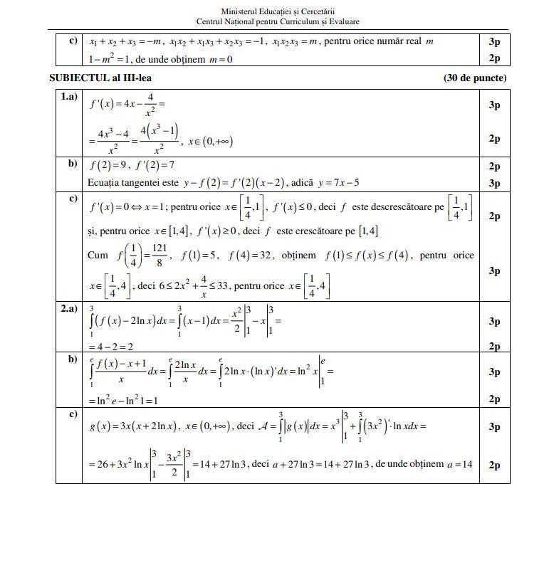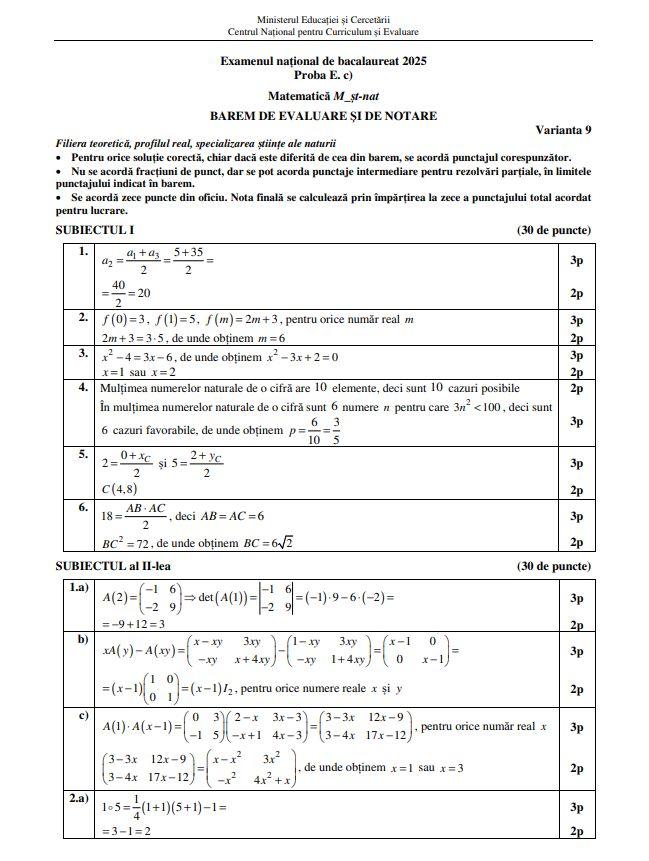 Bacalaureat 2025. Barem Matematică - Ştiinţele naturii