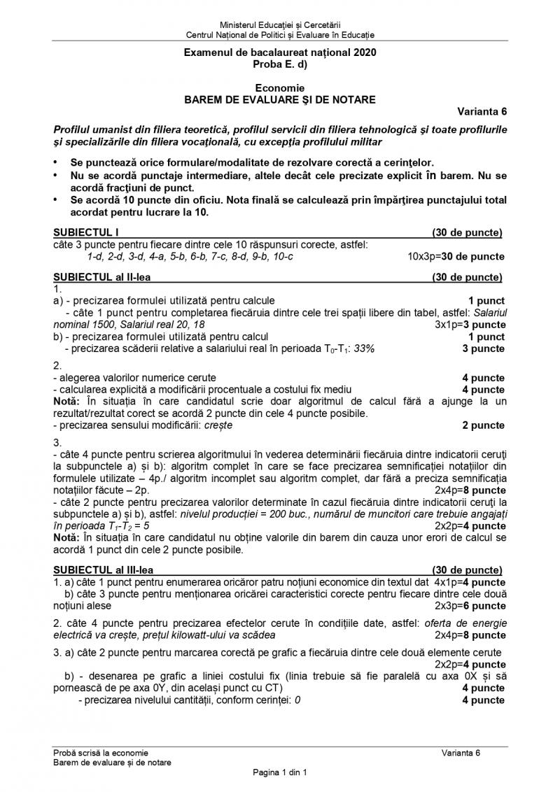 Subiecte Economie, BAC 2020
