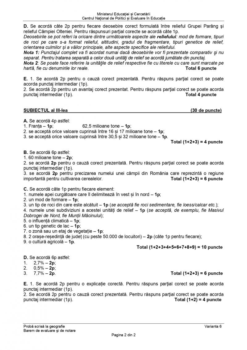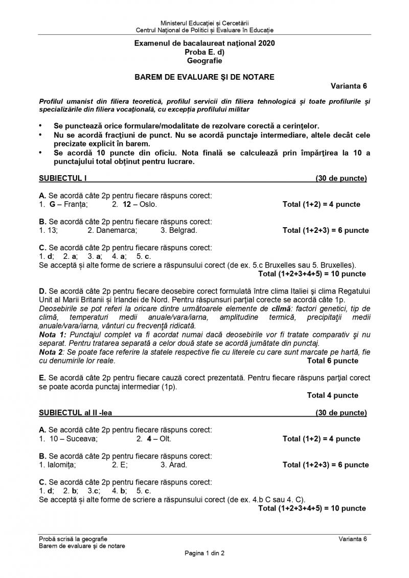 Barem Geografie, Bac 2020