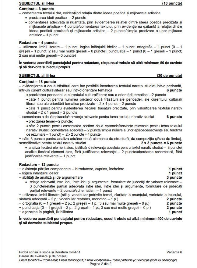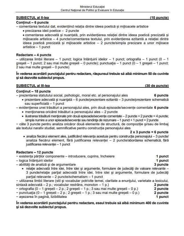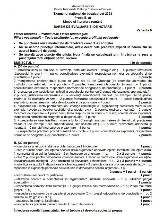 Baremul de corectare la proba de Limba și Literatura Română a fost publicat, luni, 26 iunie 2023, pe site-ul edu.ro.
