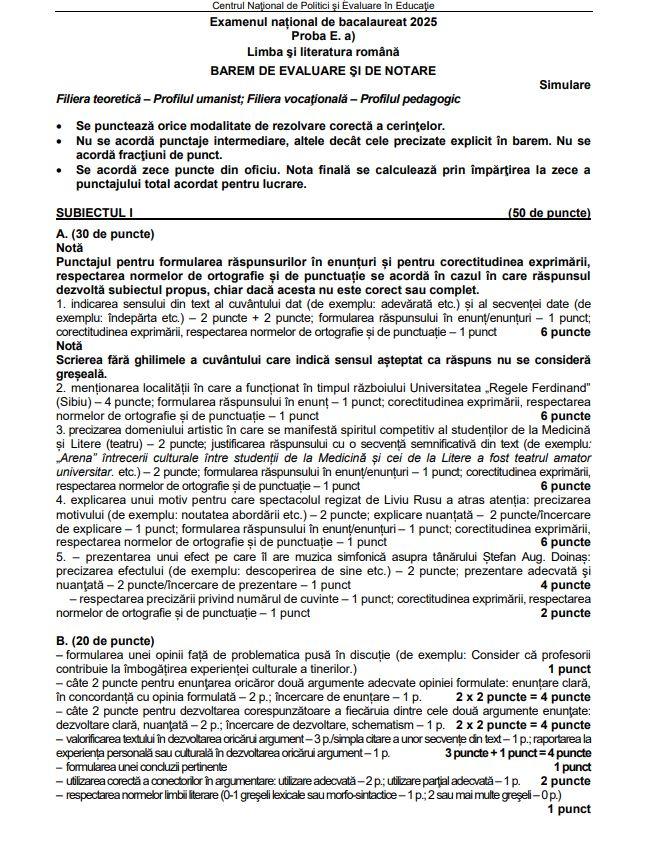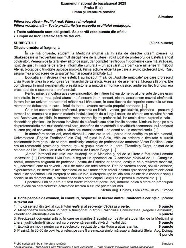 Barem simulare Bacalaureat la Limba Română 2025. Cum trebuiau rezolvate subiectele