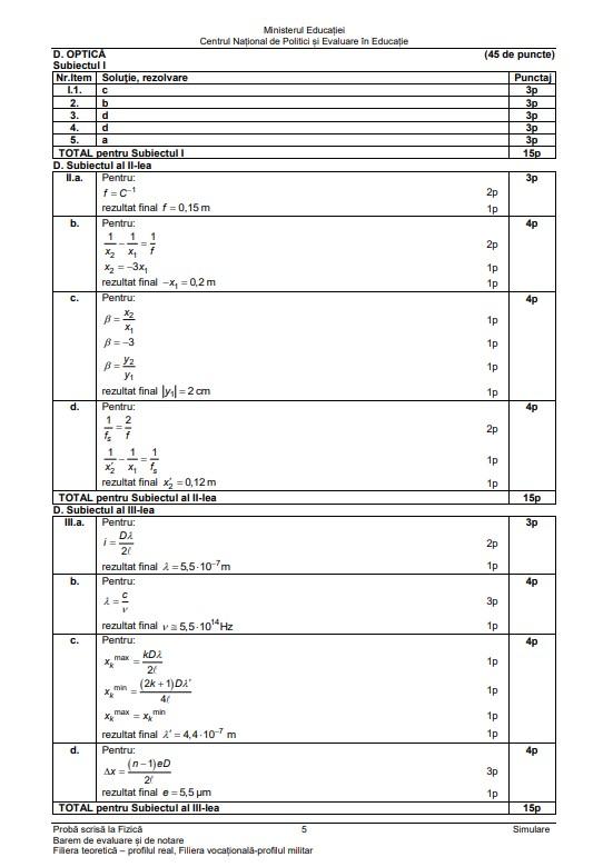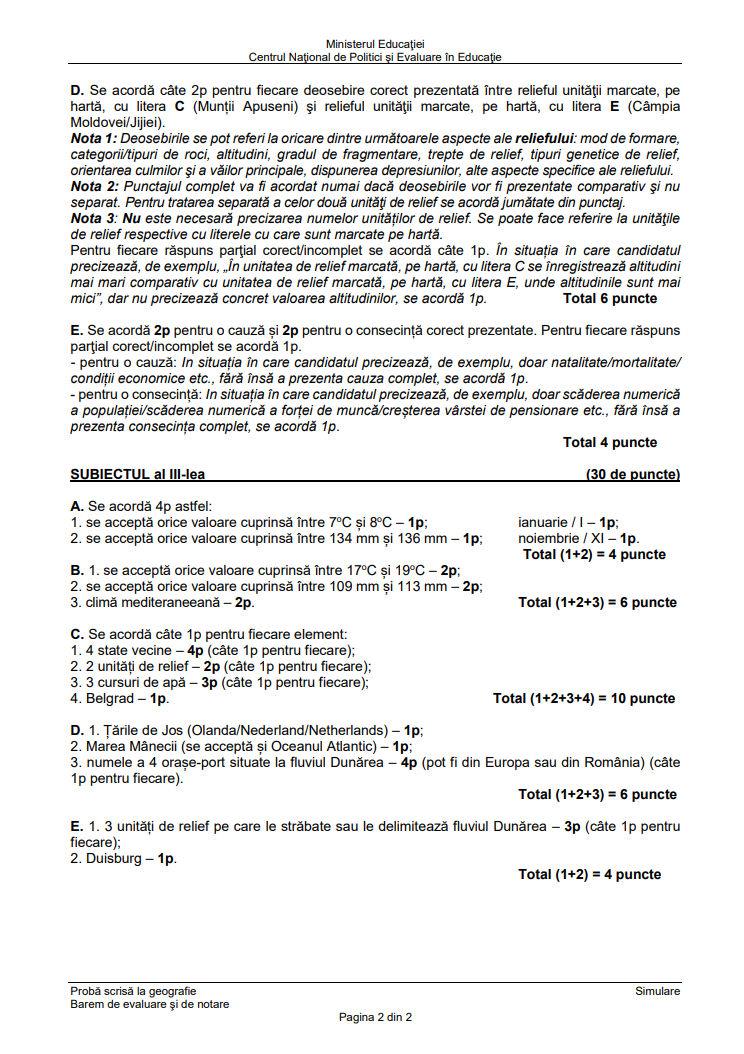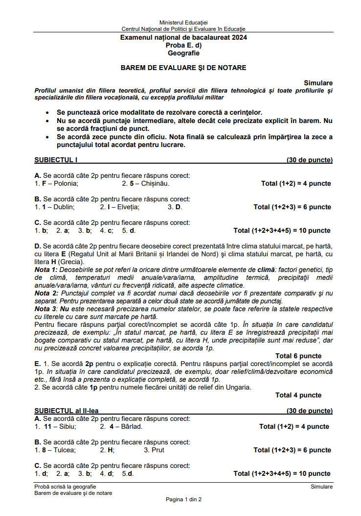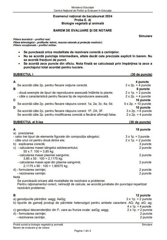 Simularea la Bacalureat 2024. Baremele de corectare și notare pentru proba scrisă la Geografie, Biologie sau Fizică, au fost publicate de Ministerul Educației pe subiecte.edu.ro. Conform calendarului simulărilor, astăzi, 6 martie, simulările au continuat cu proba la alegere a profilului și specializării. Rezultatele vor fi comunicate elevilor pe 15 martie. Notele obținute se trec în catalog doar la solicitarea scrisă a elevului sau a părintelui/tutorelui.