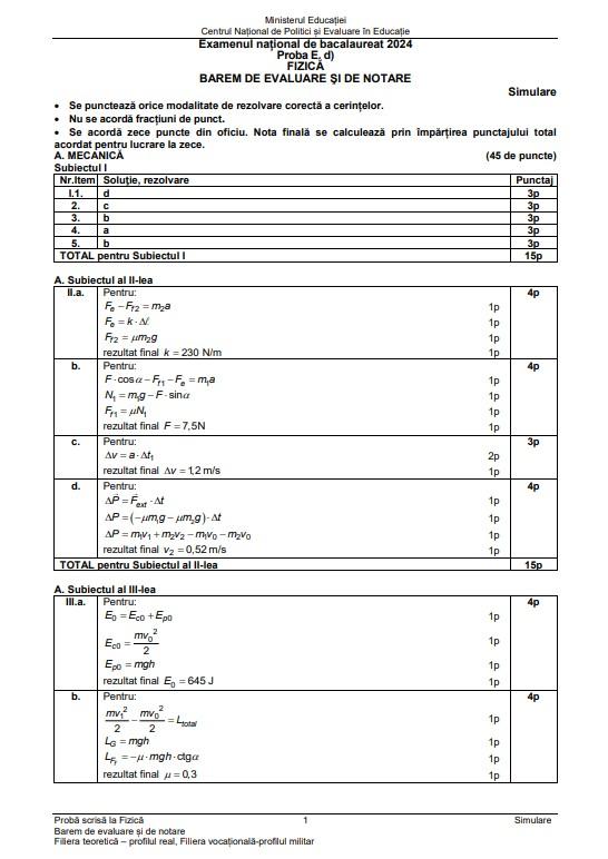 Barem la Fizică. Cum trebuiau rezolvate subiectele