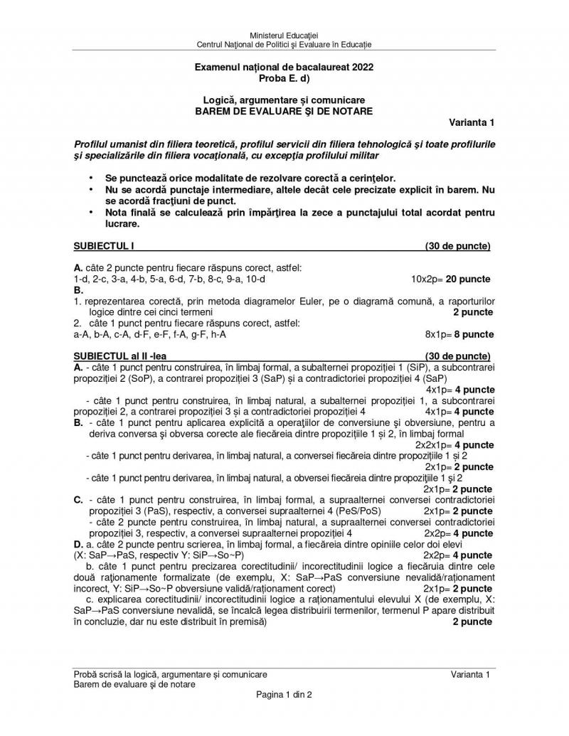 Ministerul Educației a publicat, pe subiecte.edu.ro, baremul de corectare și subiectele de la proba la alegere a profilului de la examenul de Bacalaureat 2022 - logică şi argumentare.