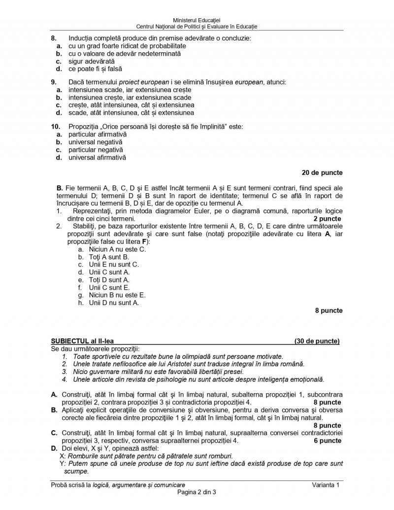 - 17 august 2022 - Proba obligatorie a profilului — proba E.c) — proba scrisă