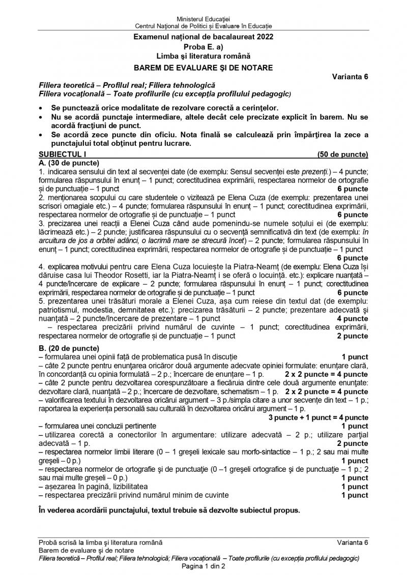 Baremul de corectare la limba şi literatura română, profilul real - Bacalaureat 2022