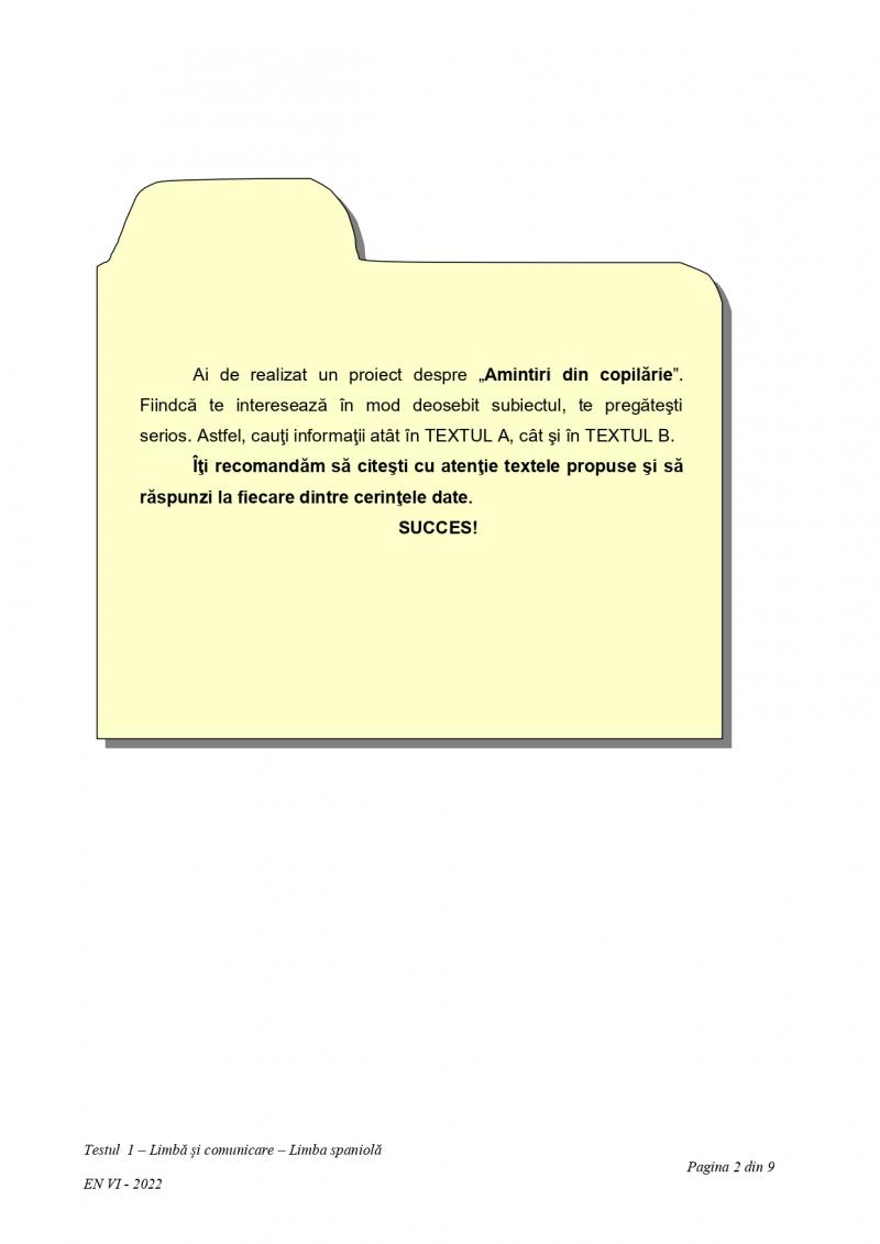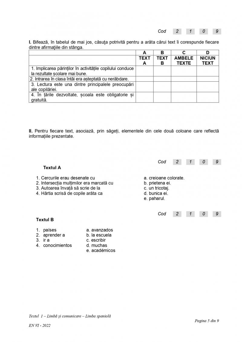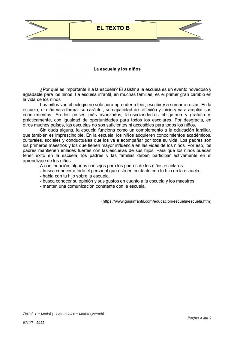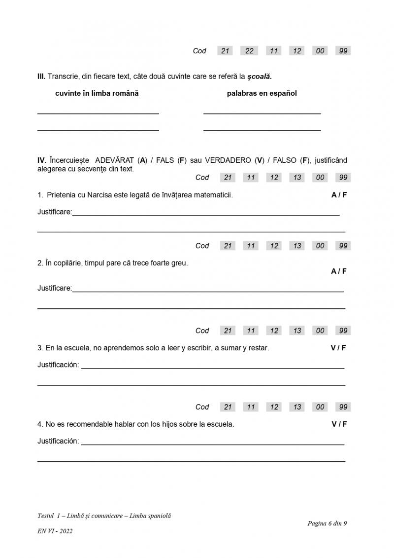 - Evaluare naţională clasa a 6-a. Limba şi comunicare - subiecte limba spaniolă