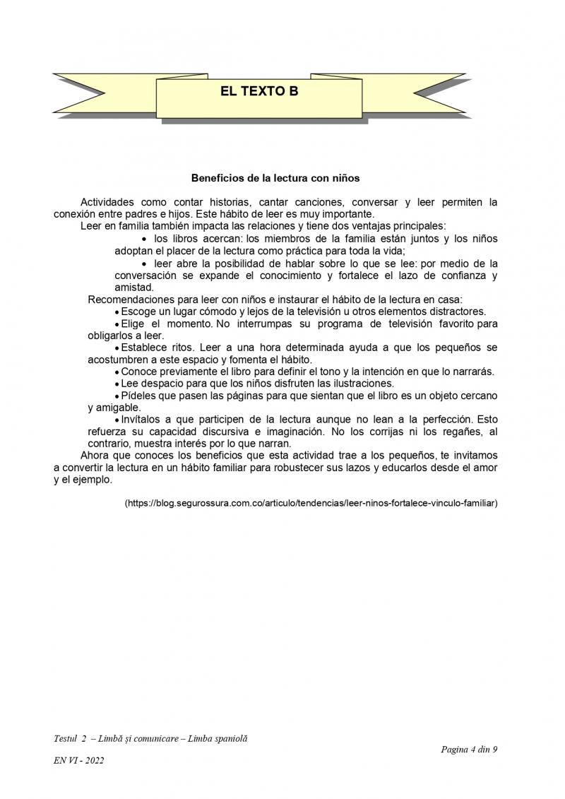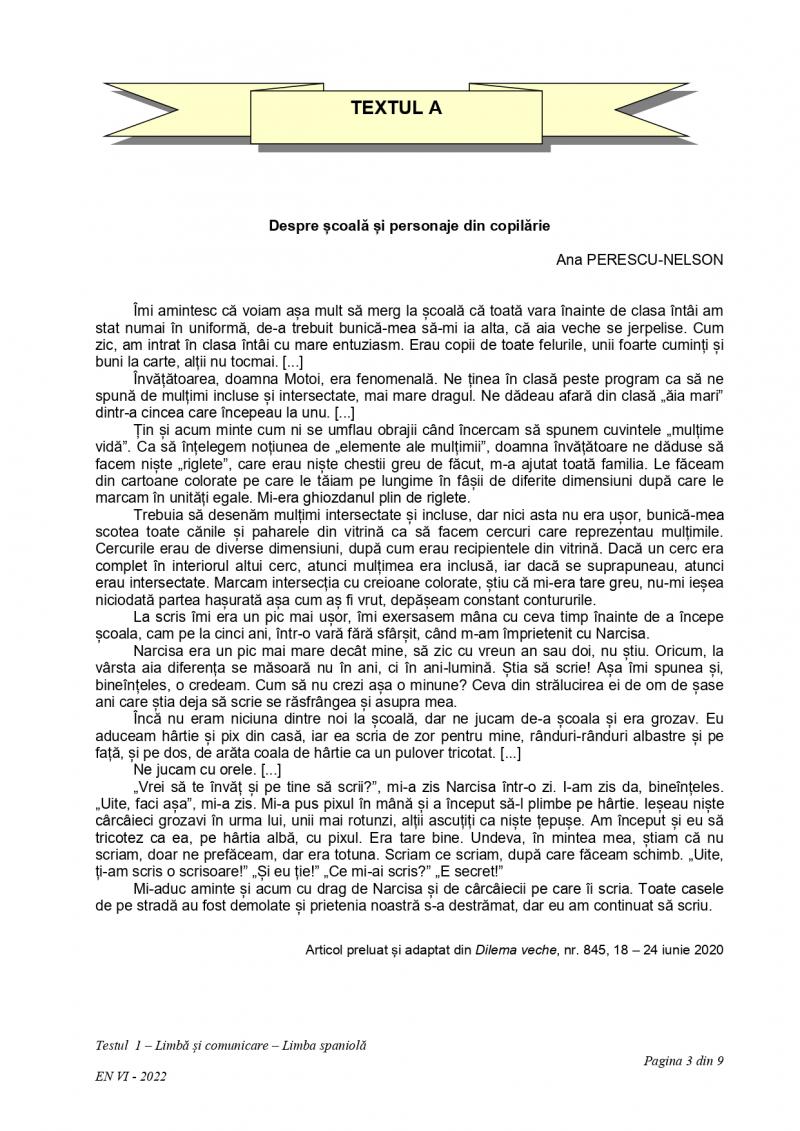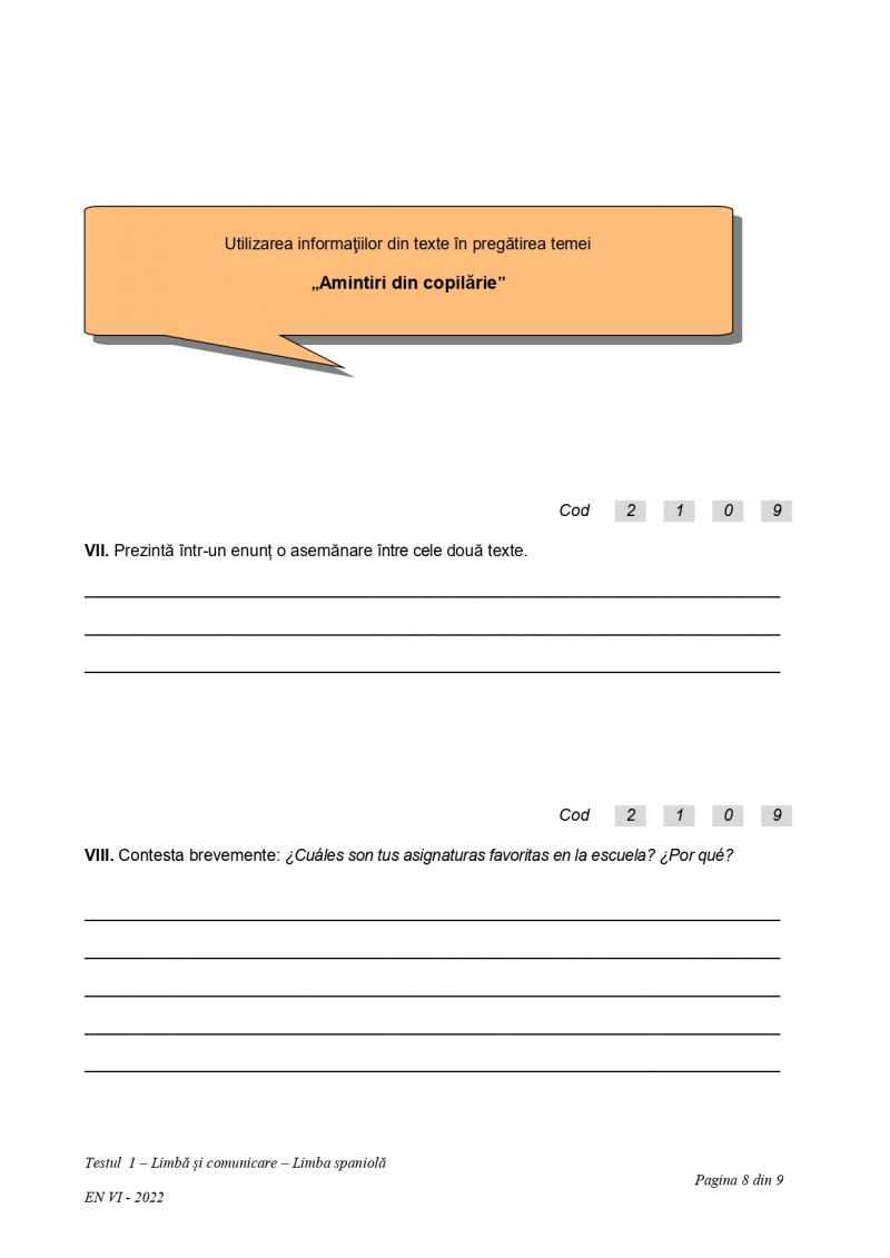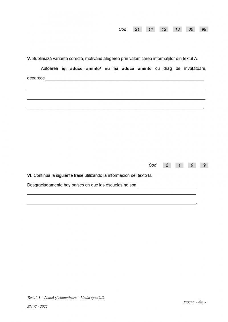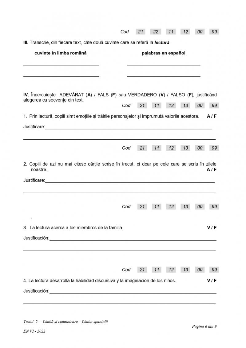 - Evaluare naţională clasa a 6-a. Limba şi comunicare - subiecte limba spaniolă