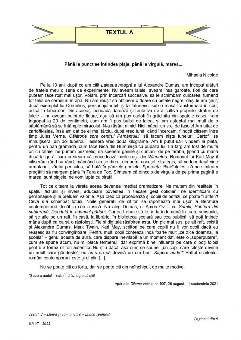 - Testul 3 de antrenament pentru Evaluare Naţională 2022 la limba şi literatura română