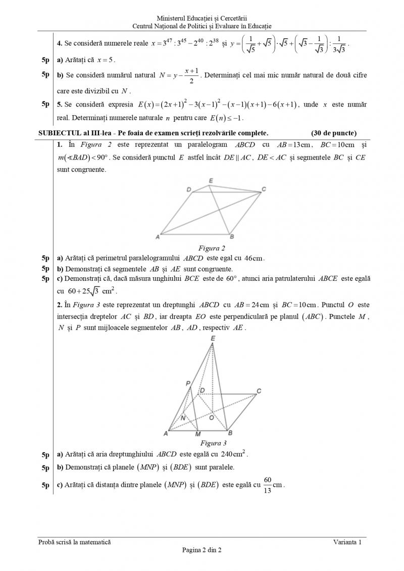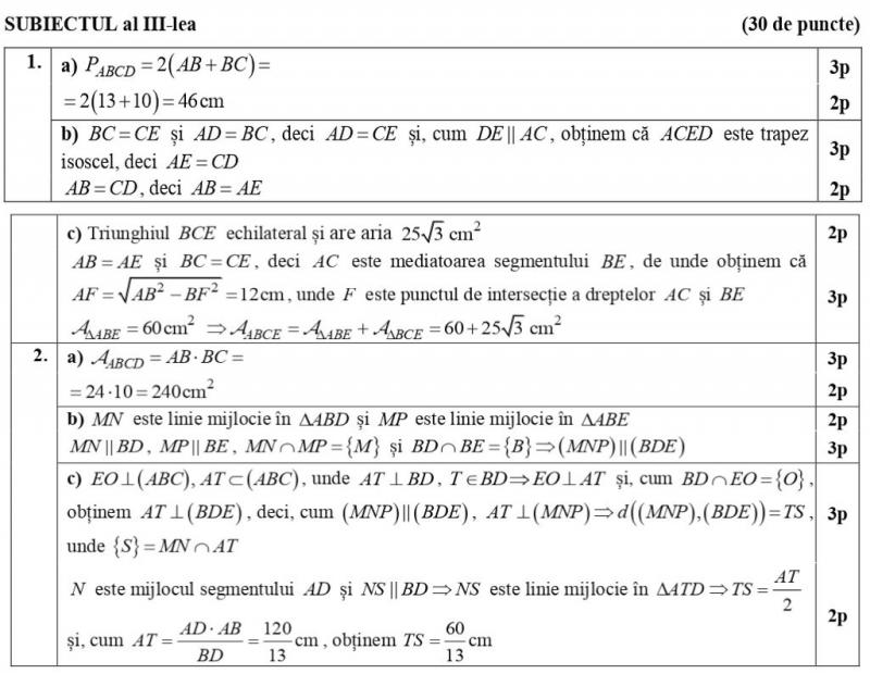Rezolvare subiect III, la Evaluare Națională - proba de matematică