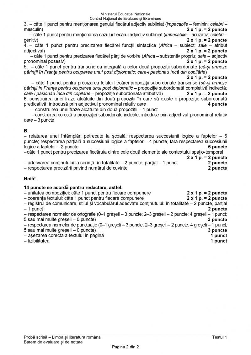 Ministerul Educaţiei Naţionale, prin Centrul Naţional de Evaluare şi Examinare, atrage de asemenea atenţia că vor fi punctate şi alte formulări sau modalităţi de rezolvare corectă a cerinţelor.