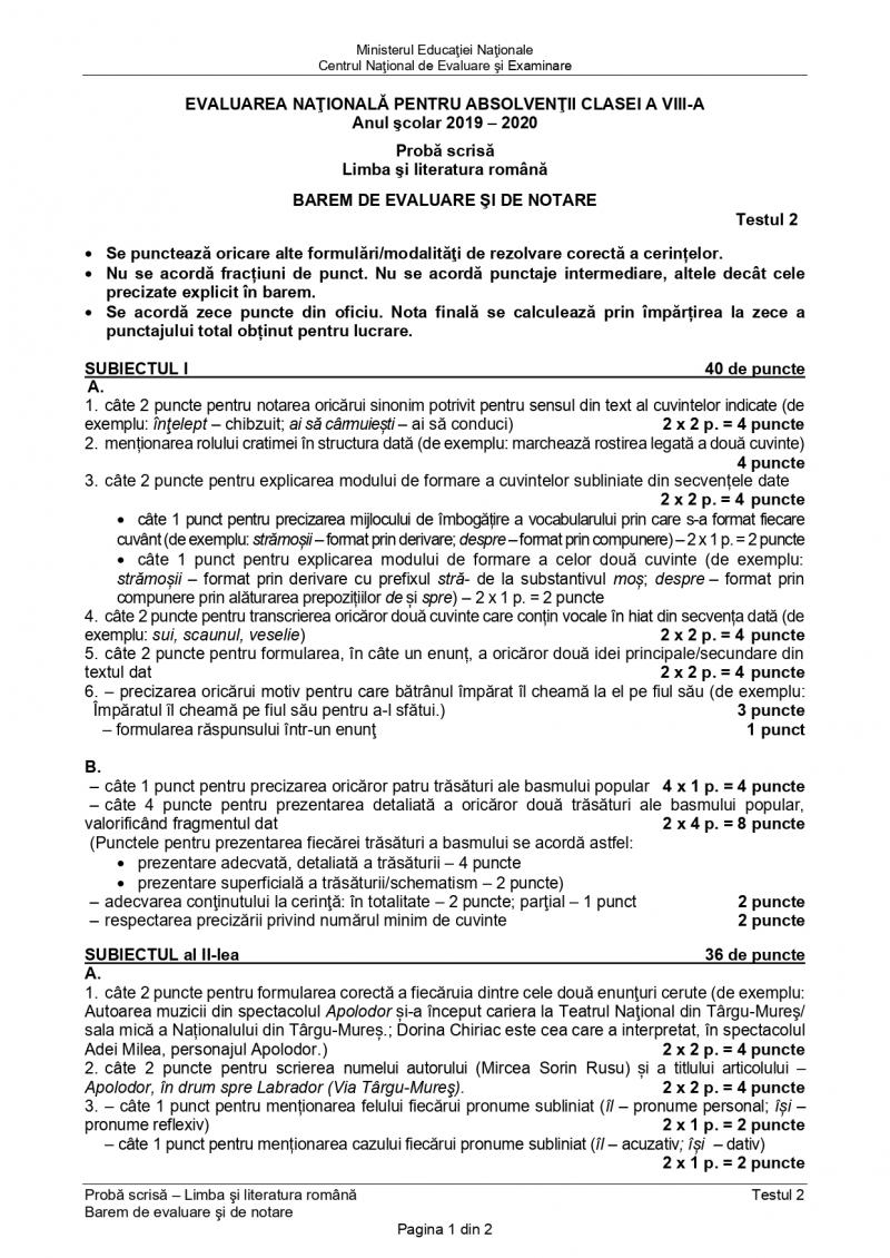 Ministerul Educaţiei Naţionale, prin Centrul Naţional de Evaluare şi Examinare, atrage de asemenea atenţia că vor fi punctate şi alte formulări sau modalităţi de rezolvare corectă a cerinţelor.