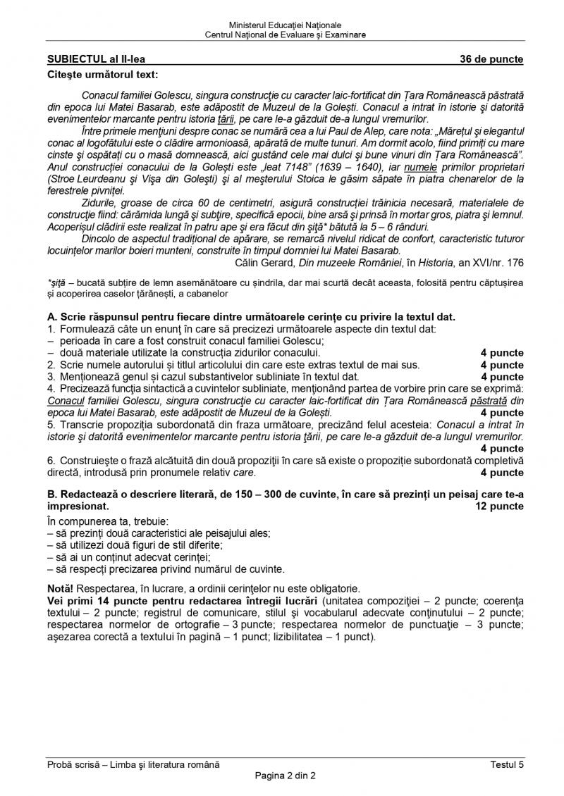 Ministerul Educaţiei Naţionale, prin Centrul Naţional de Evaluare şi Examinare, atrage de asemenea atenţia că vor fi punctate şi alte formulări sau modalităţi de rezolvare corectă a cerinţelor.