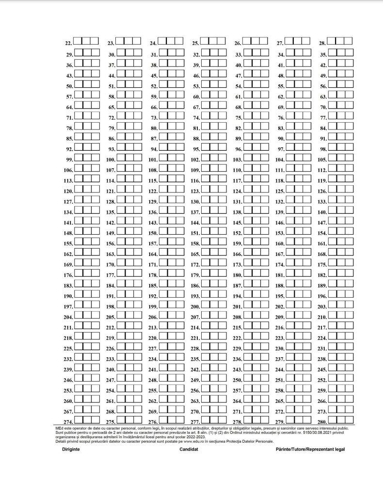 Prima opţiune se trece la poziţia 1 din fişă, completând codul care apare în broşură în dreptul liceului. Urmează opţiunea doi, după aceeaşi procedură. Celelalte opţiuni pentru licee se completează în acelaşi mod, în ordinea preferinţelor, prin precizarea codului alocat fiecărei opţiuni.