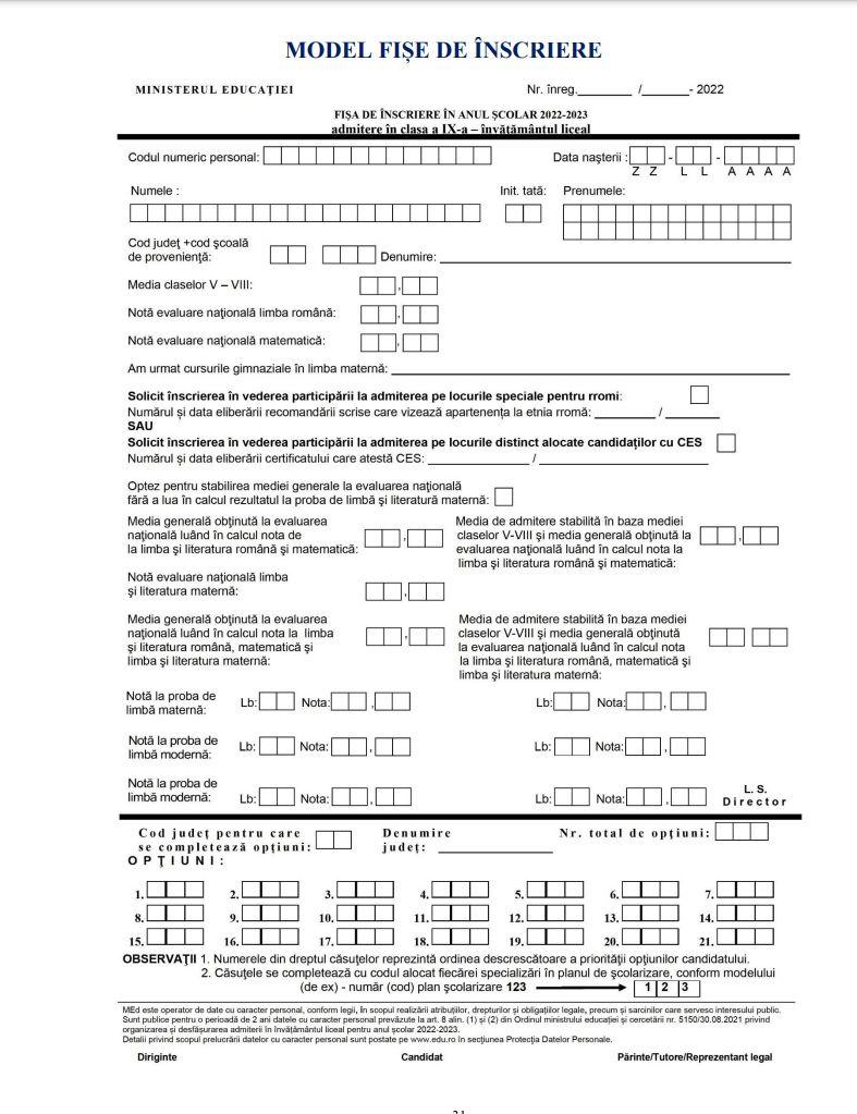 Fişă înscriere liceu 2022. Cum se completează corect fişa de înscriere la liceu