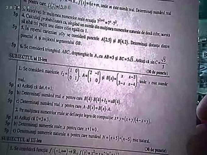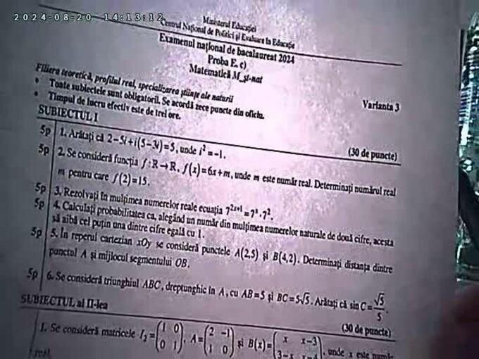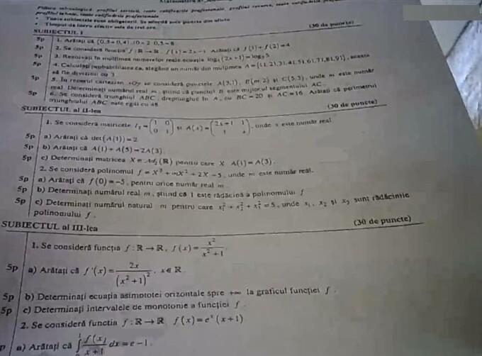 Update 11:00: Au apărut imagini în mediul oline cu subiectele de la M2 - Matematică - Științele naturii şi de la profilul Tehnologic.