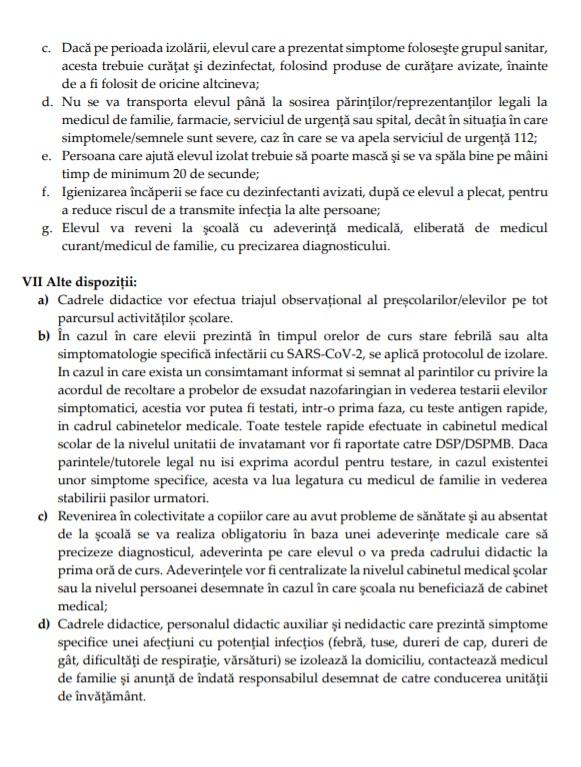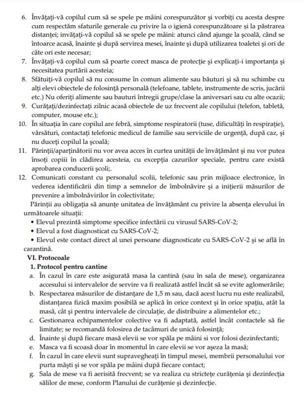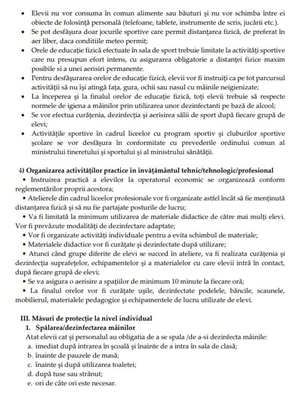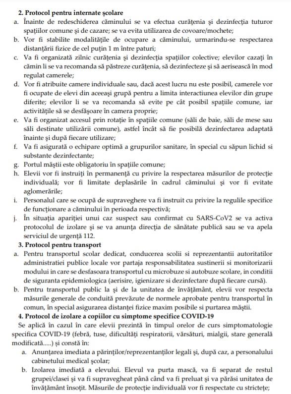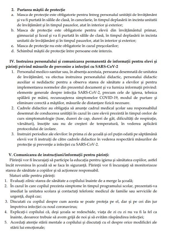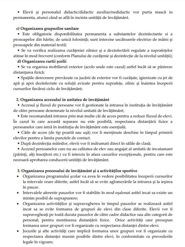 - Distanţarea de un metru între elevi, masca obligatorie şi triajul observaţional sunt câteva dintre măsurile prevăzute în document.
