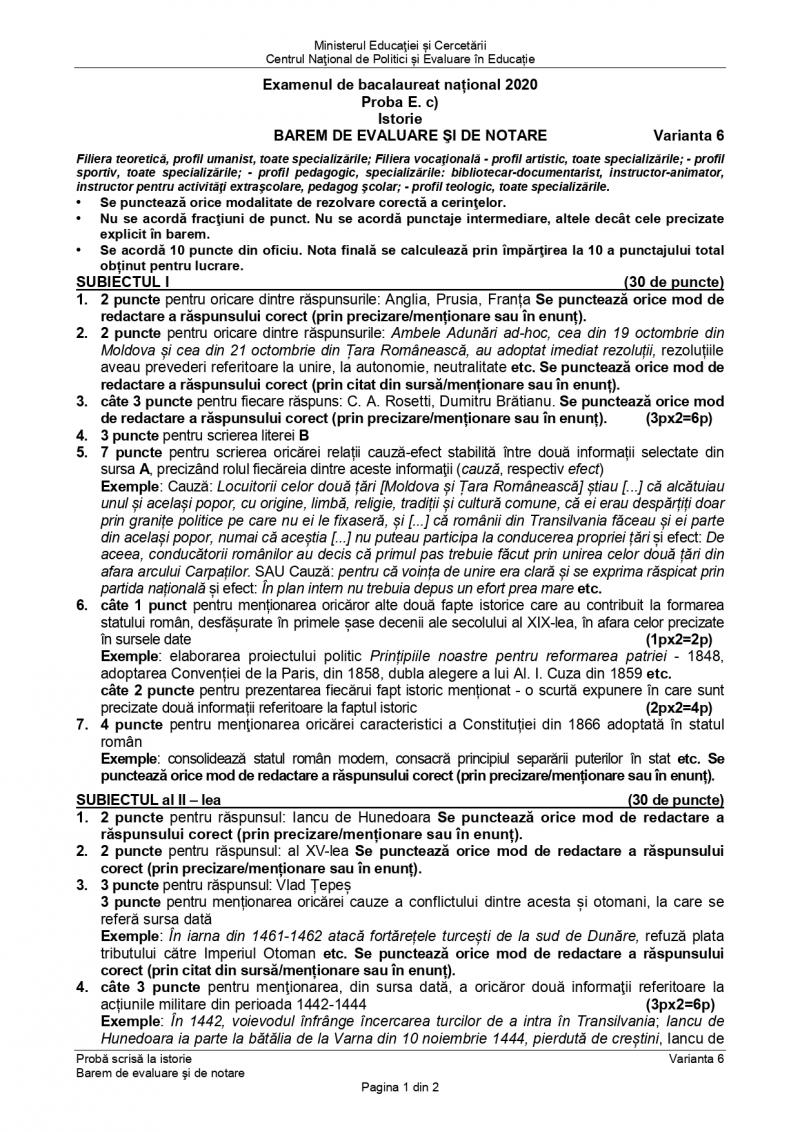 Rezolvare subiecte Bacalaureat 2020 Istorie. A fost publicat baremul de corectare
