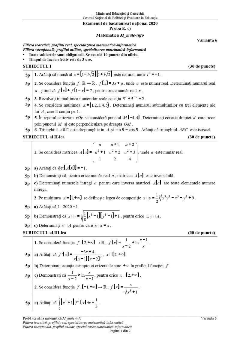 Rezolvare subiecte Bacalaureat 2020 Matematică. Miercuri, 24 iunie, absolvenții de clasa a XII-a au avut examenul la Matematică, proba obligatorie la BAC 2020 pentru profilul studiat în anii de liceu.