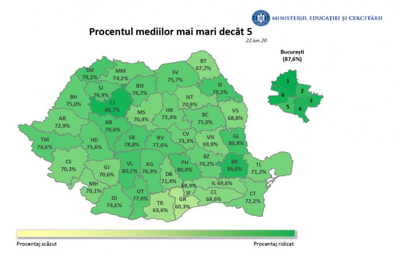 Ministerul Educației și Cercetării a centralizat rezultatele înregistrate la Evaluarea Națională ale absolvenților clasei a VIII-a (înainte de contestații), sesiunea 2 – 27 iunie 2020.