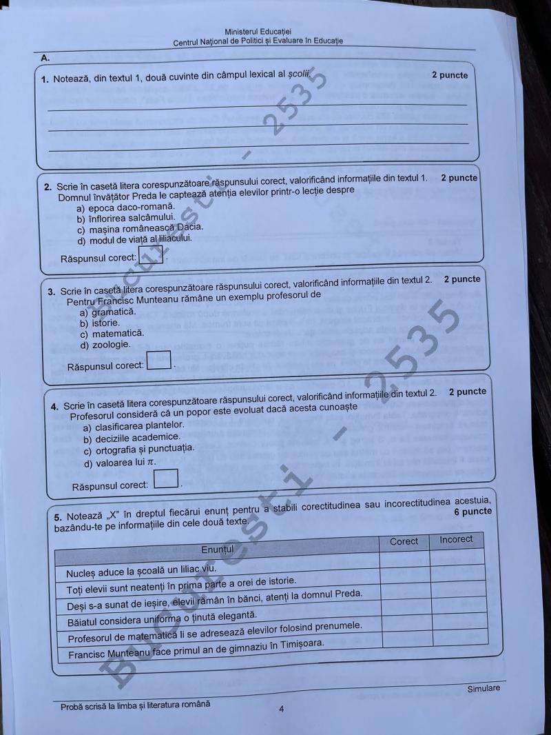 Galerie foto Simulare Evaluare Naţională 2022. Subiecte şi barem la Limba Română