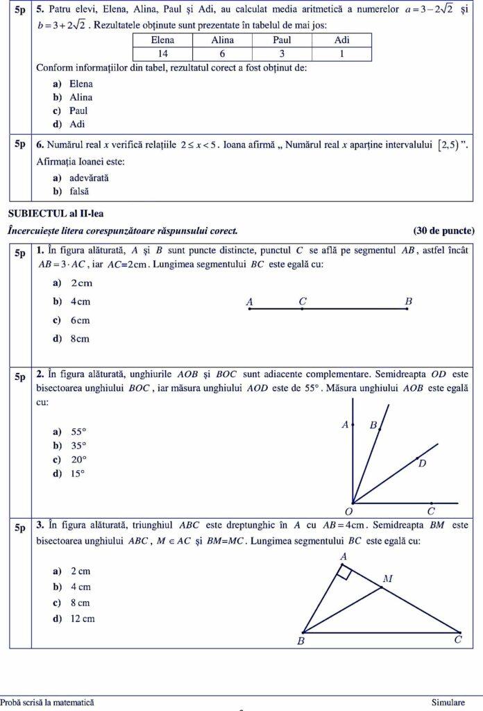 - 5 aprilie 2022 – Matematică – probă scrisă