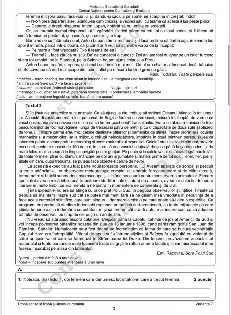 Galerie foto Subiecte la Evaluarea Națională 2025 - română. "Toate pânzele sus!" la Subiectul I