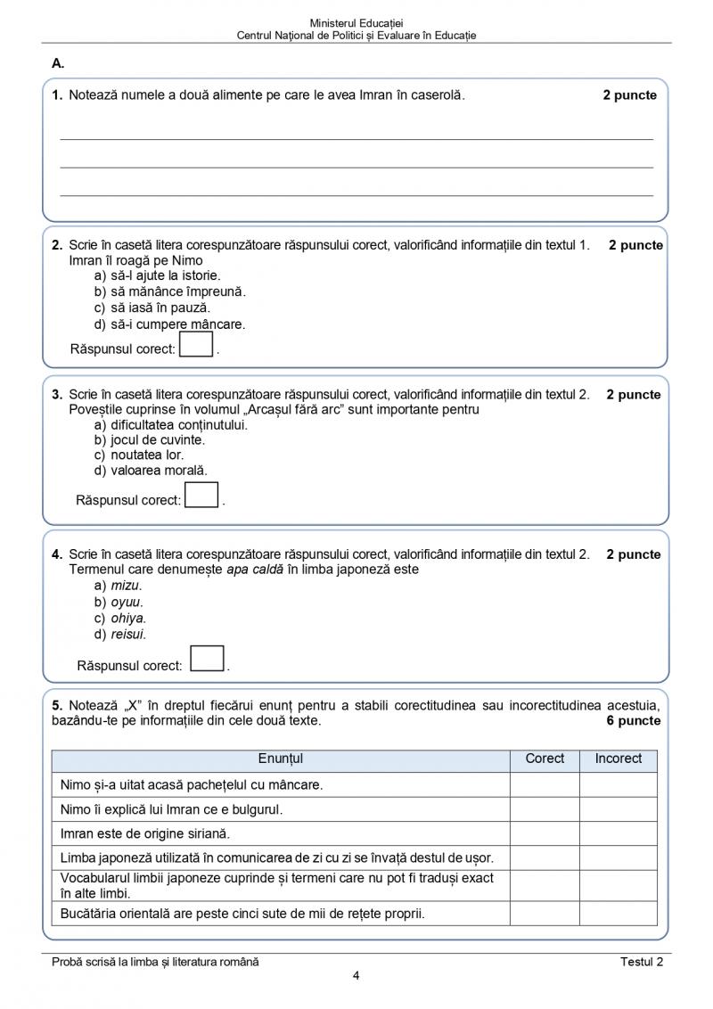 - 17 iunie 2022 - Limba și literatura maternă — probă scrisă