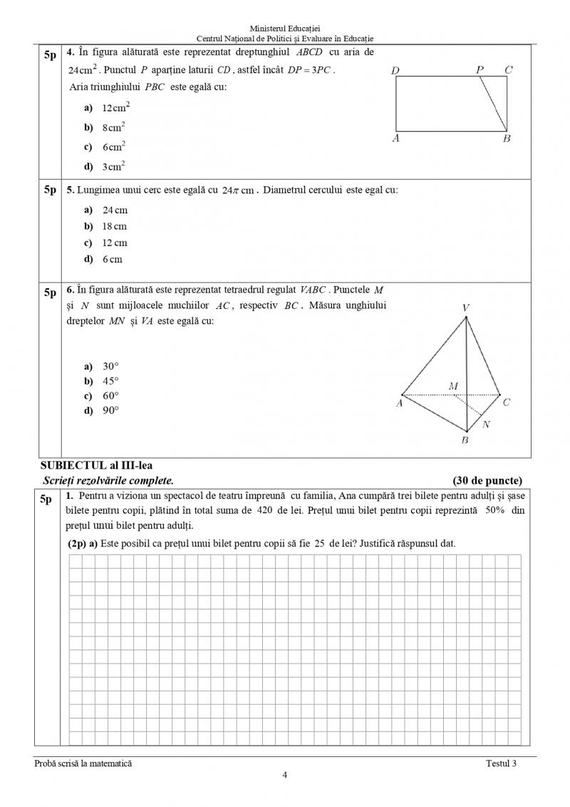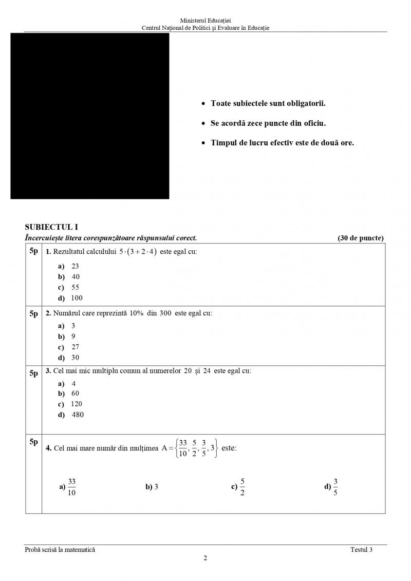Testul 3 de antrenament la Matematică - Evaluare Naţională 2022
