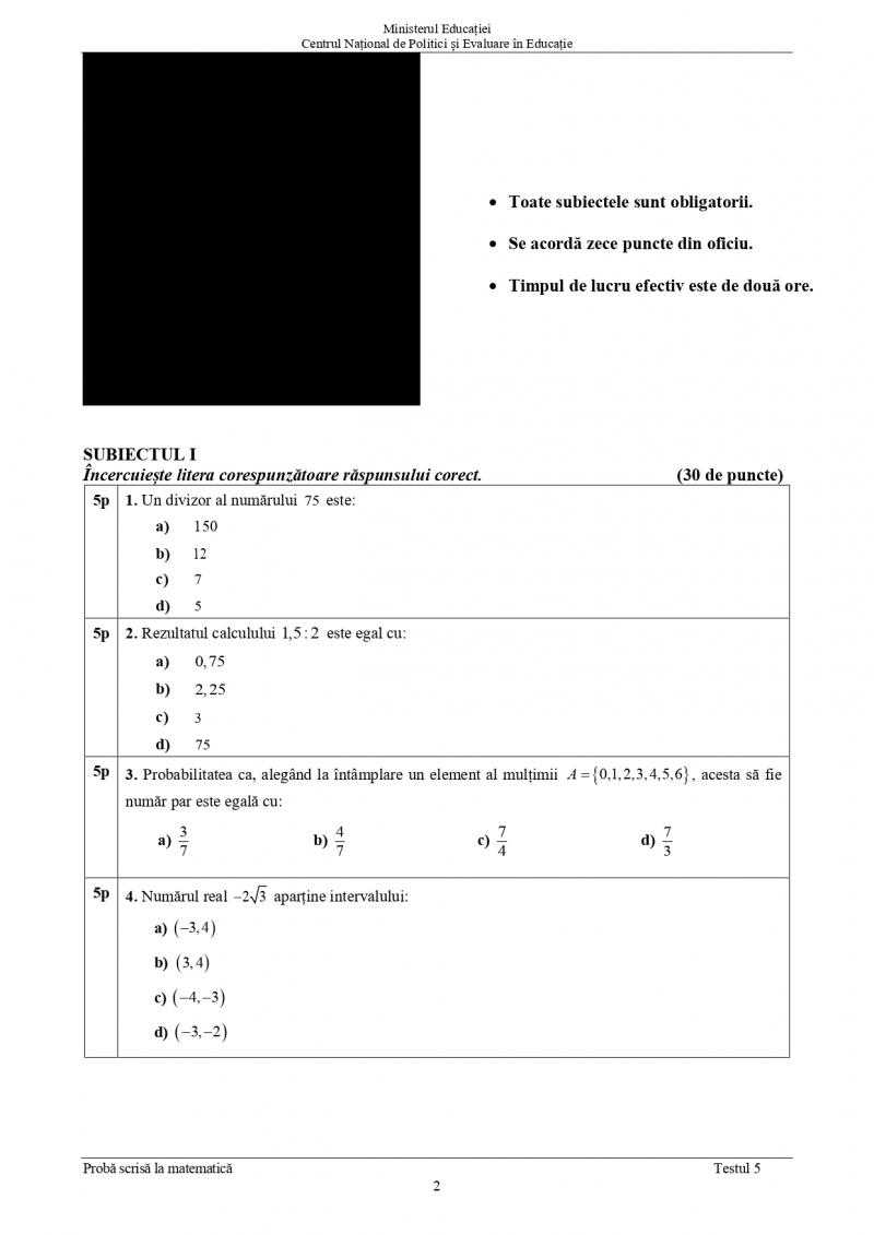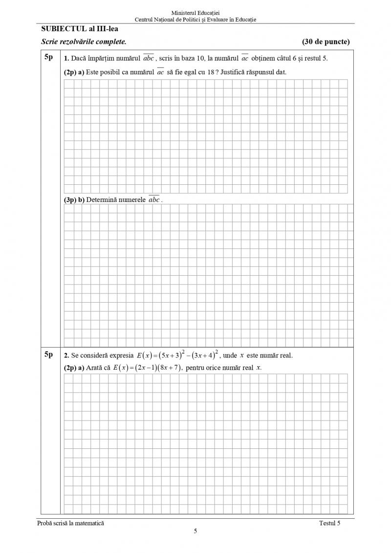 Testul 5 de antrenament la Matematică - Evaluare Naţională 2022