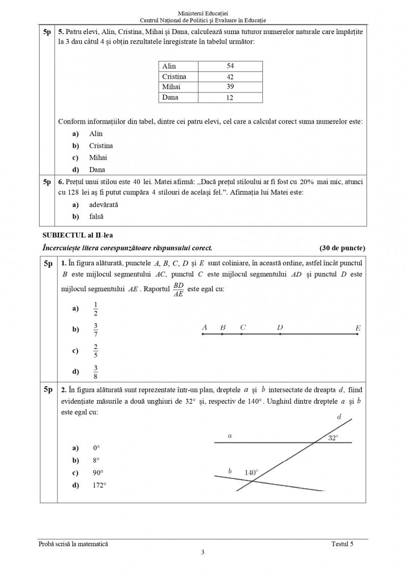 - Testul 3 de antrenament pentru Evaluare Naţională 2022 la matematică - barem de corectare