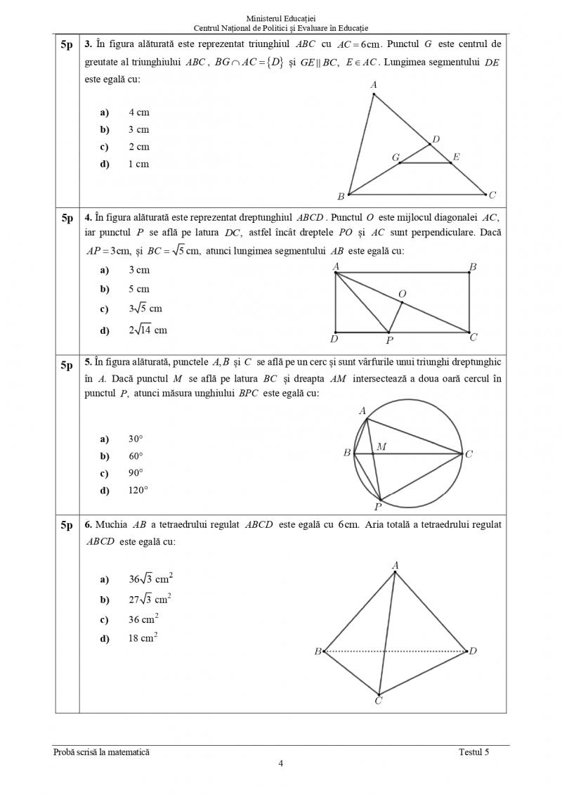 - Testul 4 de antrenament pentru Evaluare Naţională 2022 la matematică - barem de corectare