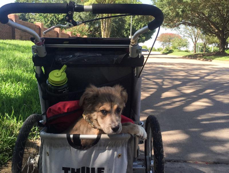 Savannah, adoptată în timpul călătoriei, de la un adăpost de animale din Texas